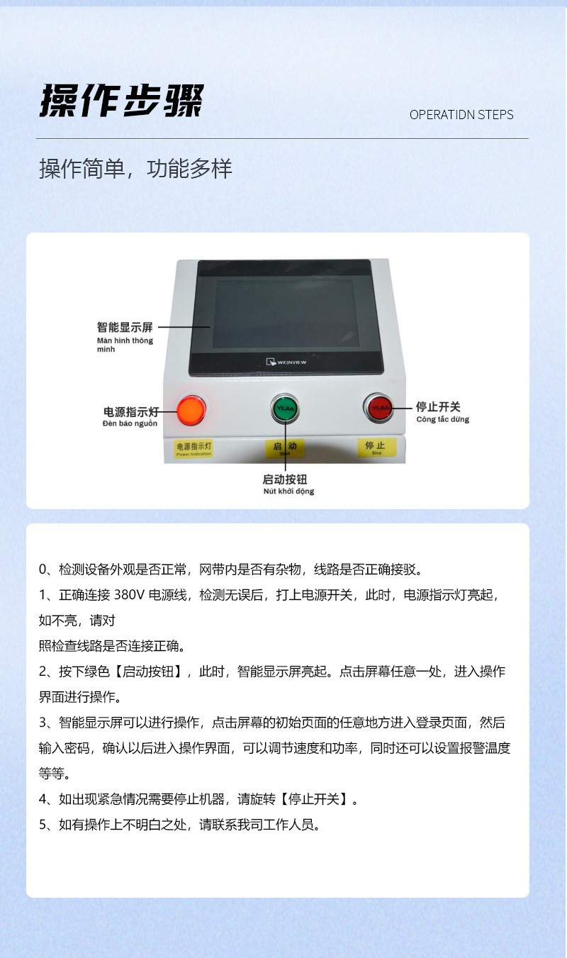 采用無極可調(diào)技術(shù),具有能量可調(diào),一鍵待機功能,節(jié)約不必要的能耗開支